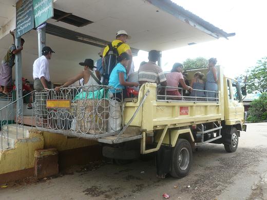 乗客は荷台に乗り、山の上にあるチャイティーヨー目指して登っていくのです。