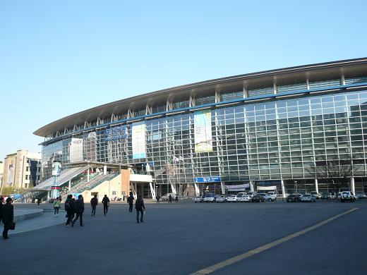 私が初めて見た釜山駅の正面はコンクリート製で、正面左側から3階へと続く大きなスロープが印象的だった。