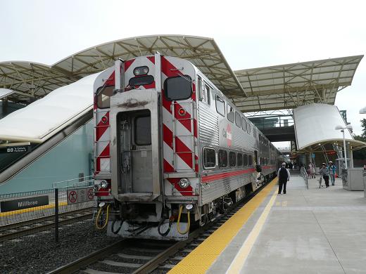 ガイドブックにはバートと共に空港連絡鉄道として掲載されているカルトレインCaltrain。