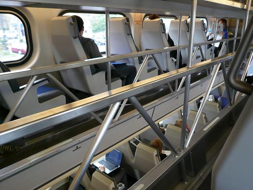 この2階建て客車の車内の特徴は、座席の上だけ2階建てになっていること。