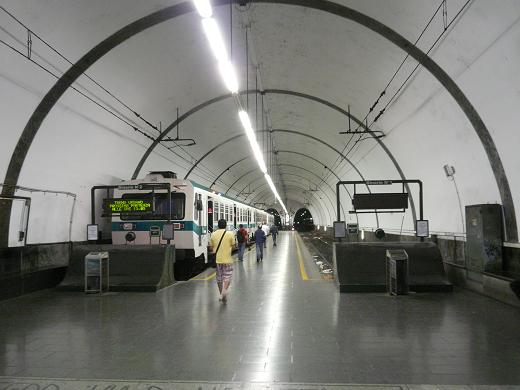 このPiazzale Flaminio駅は崖下にある駅で、地上にある改札口からは階段や坂がないのに、ホームはトンネルの中。