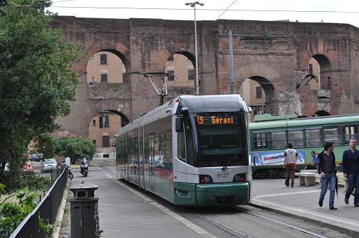 事実、このマッジョーレ門がローマで一番路面電車の系統が集まる場所。