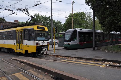 日中およそ10分間隔でマッジョーレ門の下と路面電車との平面クロスをこれらの電車が通っていく。