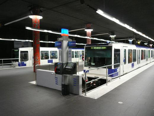 ローザンヌ・フロン駅に停車するローザンヌメトロ1号線の電車。
