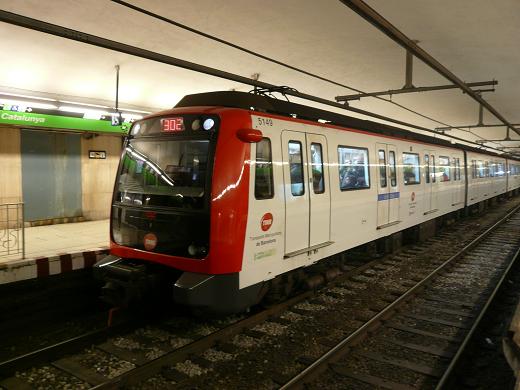 地下鉄3号線カタルーニャCatalunya駅に停車中の5000系電車。