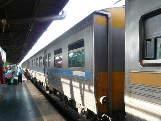 タイ国鉄の2等座席車は車端部に扉があるのが標準だけど、THN系では中心に寄っているのが特徴。