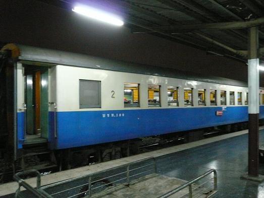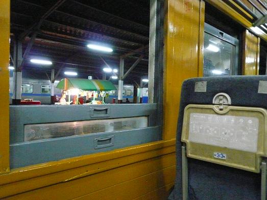 でもこの2等車、窓から覗いている座席の色がいつもの青じゃない。