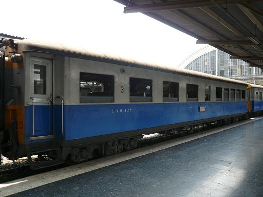 右側は広幅の側窓、左側は狭窓が並ぶこの客車、これもエアコン無し3等座席車。