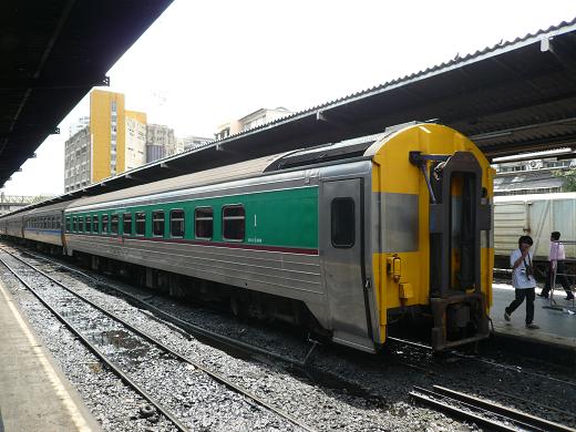 ステンレスの車体で窓下に緑の細帯を纏っていた1等寝台車(以前紹介したときの写真はコチラ)。