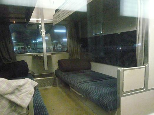 車内の寝台は14系のようなガラス戸は付けられず、日本で走っていたときのまま。