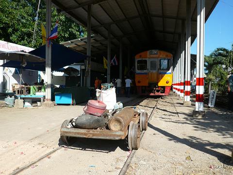 ちなみに現在のメークローン線は始発から終点まで行き違いの設備はなく、列車増発は不可能。