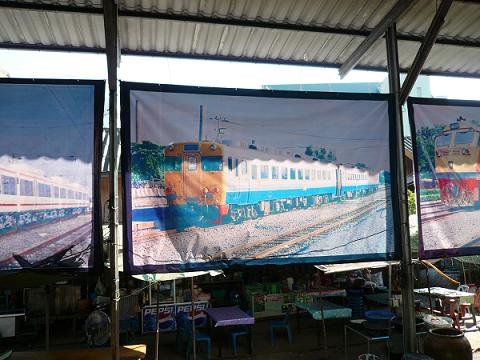 その幕にはタイ国鉄の色々な車両の写真が印刷されている。