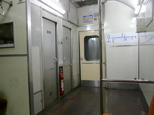 1両に2箇所あったトイレは片方が閉鎖され、奥の1箇所のみが使用されている。