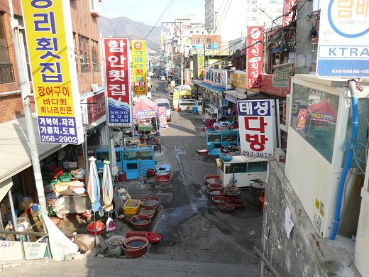 新しい駅舎とは全然違う、昔ながらの韓国の街並みが残っている。