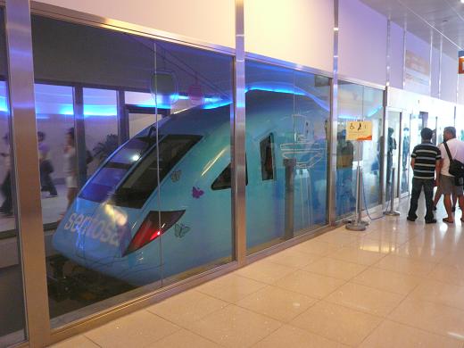 セントーサ駅は両側に乗車ホームと降車ホームがあり、この駅だけガラス張りのホームドアが付く。
