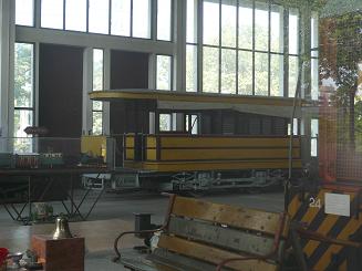 ここの片隅に1両、興味深い黄色の電車が置いてある。