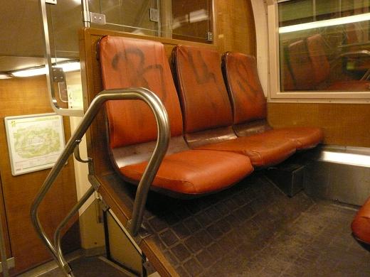 うまくまとめた構造になっているけど、日本に比べれば暗い照明と座席の落書きで雰囲気はイマイチ。