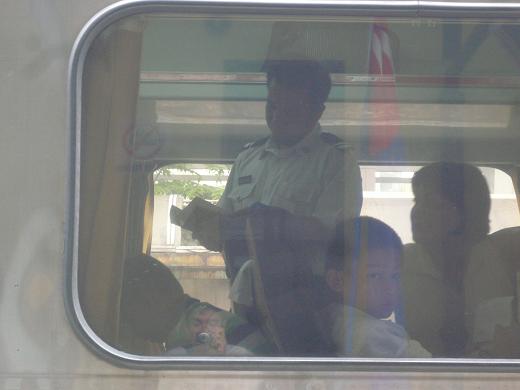 列車の発車時間が近付くと扉を開け、駅員さんが乗車券のチェックをする。