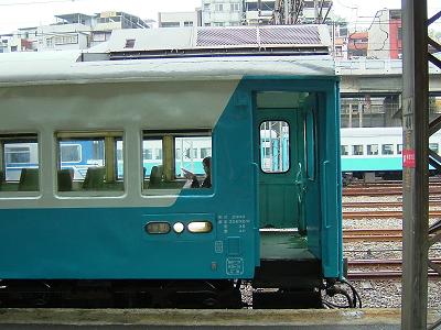 非冷房だった旧型客車に冷房を取り付けたため、車内の天井が低かった。