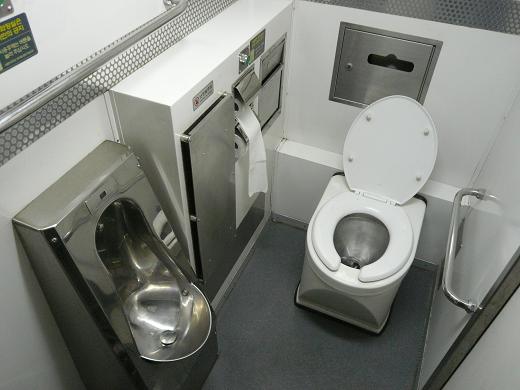 洋式便器とは別に、同じ部屋の中にステンレス製の小便器が付いているのだ。