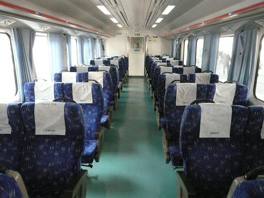 車内は転換シートにドア付近ロングシートのセミクロスシートだったのが、全席回転リクライニングシートに交換。