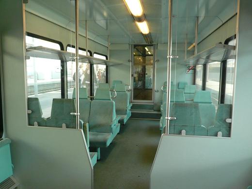 車内は横2+2列のクロスシートで、扉の横には補助イスが付いている。