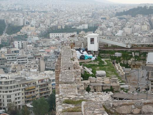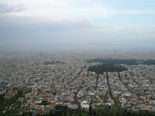 奥に見えるアテネの街並みが米粒のように小さく見える。