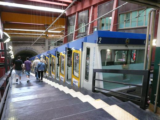 この写真の右側にはモンテサント鋼索線のホームがあり、左側には私鉄のSEPSAのホームがある。